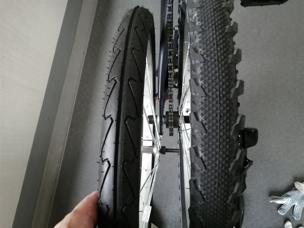 タイヤでもう少し重量を稼ぎたかったのですが、残念な結果でした。シンコーは、ゴムの厚みがあるからでしょう。チューブはもとのチューブが1.75とか1.9用なので太いですが、そのまま使えます。それとタイヤを嵌めるときに、チューブをあらかじめタイヤの中にセットしてからタイヤを嵌めていかないと、うまく入りません。タイヤはしばらくこれを使います。チューブは替えてもいいかも。