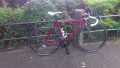 勾配のきつい部分がほぼコーティング舗装に対応しています。ギアはアウター×ローに固定。ギア比1.65です。コーティング舗装にさしかかるとほとんどダンシングです。でもリアは滑りません。すべての区間を難なくクリア。