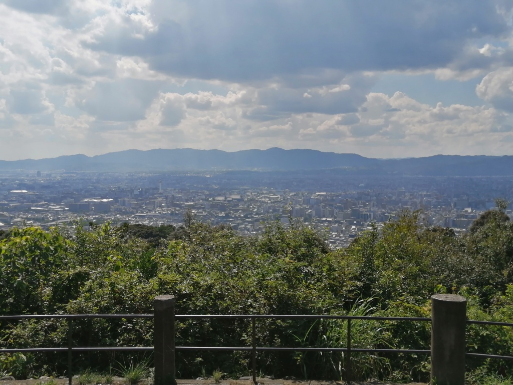 駐車場の西側には、京都市街を見渡せる展望スペースがあります。駐車場からさらに進むと青蓮院門跡の入口に突き当たります。ここから先は有料です。将軍塚は、平安時代の古墳で、坂上田村麻呂を祀ったと言われています。実際には坂上田村麻呂の墓は山科区にあり、鎌倉時代になって現在の場所に祀り直したということのようです。青蓮院門跡の敷地内の京都市街を見下ろす位置にあります。