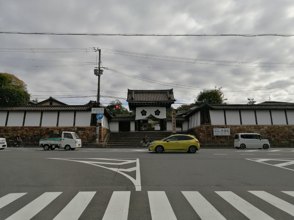 東西の通りなので、東の端から西の端までを走ってみることにします。まずは東の端、スタート地点です。東山七条という、七条通りと東大路の交差点です。突き当りは智積院です。真言宗智山派の総本山です。