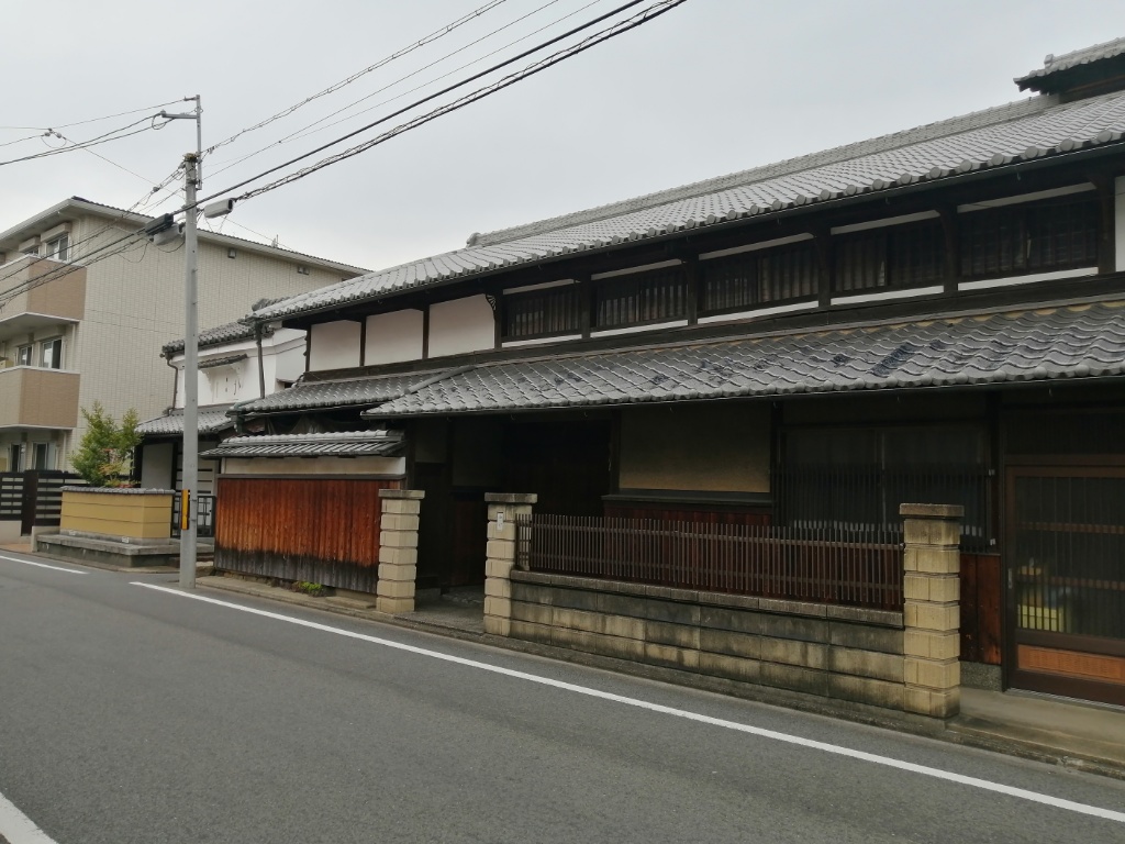 狭くなった道を通ります。通り沿いの建物には街道っぽい雰囲気があります。道路が拡幅されなかったことで、こうした建物がまだ残っています。
