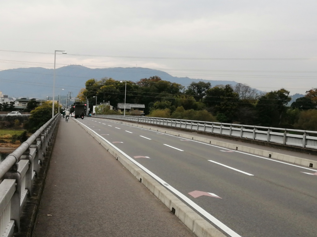 桂大橋を渡っているところです。左右に流れるのが桂川。橋を渡って右の森が桂離宮です。直進すると阪急桂駅です。実は西大路七条から先の七条通りは、国道9号線の旧道です。現在の国道9号線が1964年に供用開始する前は、西大路五条から南進し、西大路で西進するというルートでした。さらに遡ると、この道は京都から山陰に行く山陰道です。昔、桂を通って亀岡の方に抜ける道は、現在の国道9号線ではなかったのです。