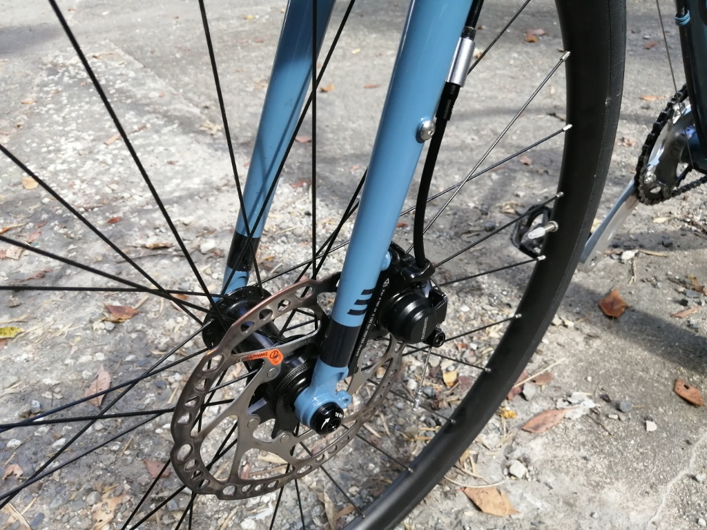 ただこの雨のおかげで、タイヤとディスクブレーキのウェット性能をテストすることができました。前輪はコンチネンタルのUltra Sport3 28Cです。そんなにスピードを出したわけではないですが、コーナーもブレーキング時もまったく不安はありません。