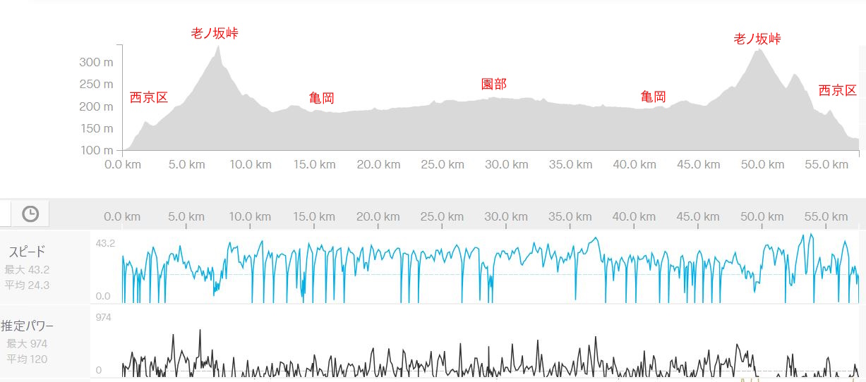 行きは向かい風でしたが、それが苦になりません。向かい風でも30km/h以上を維持できます。でも単にエアロ性能だけで速いのではないというのもわかりました。行きの老ノ坂峠登りですが、Marteでの最高タイムをあっさり更新しています。体感としては速いと思わなかったのですが、GPSのログでは速いという結果が出ています。やっぱり軽量化の効果もあるのでしょう。NCR700のタイムに迫る勢いです。