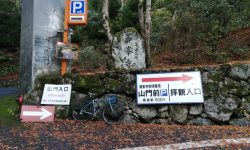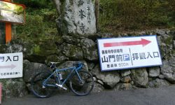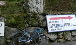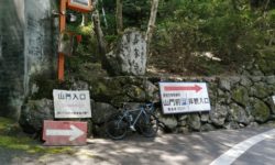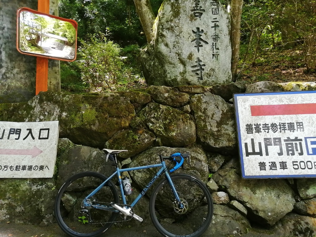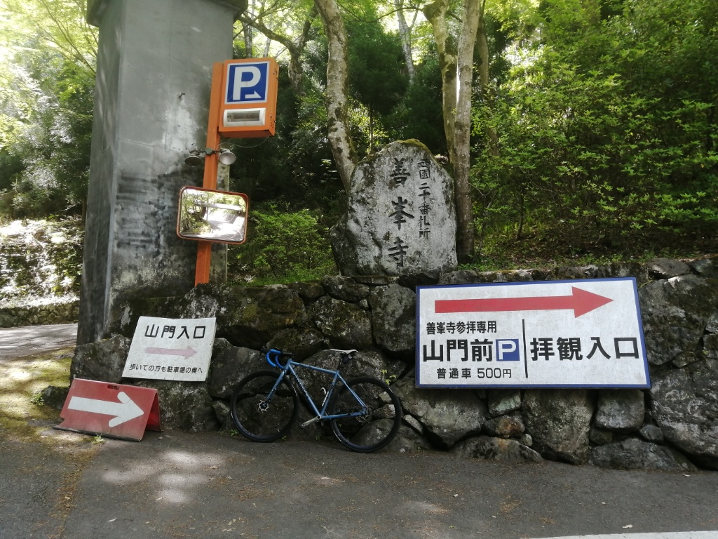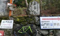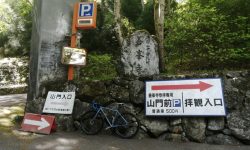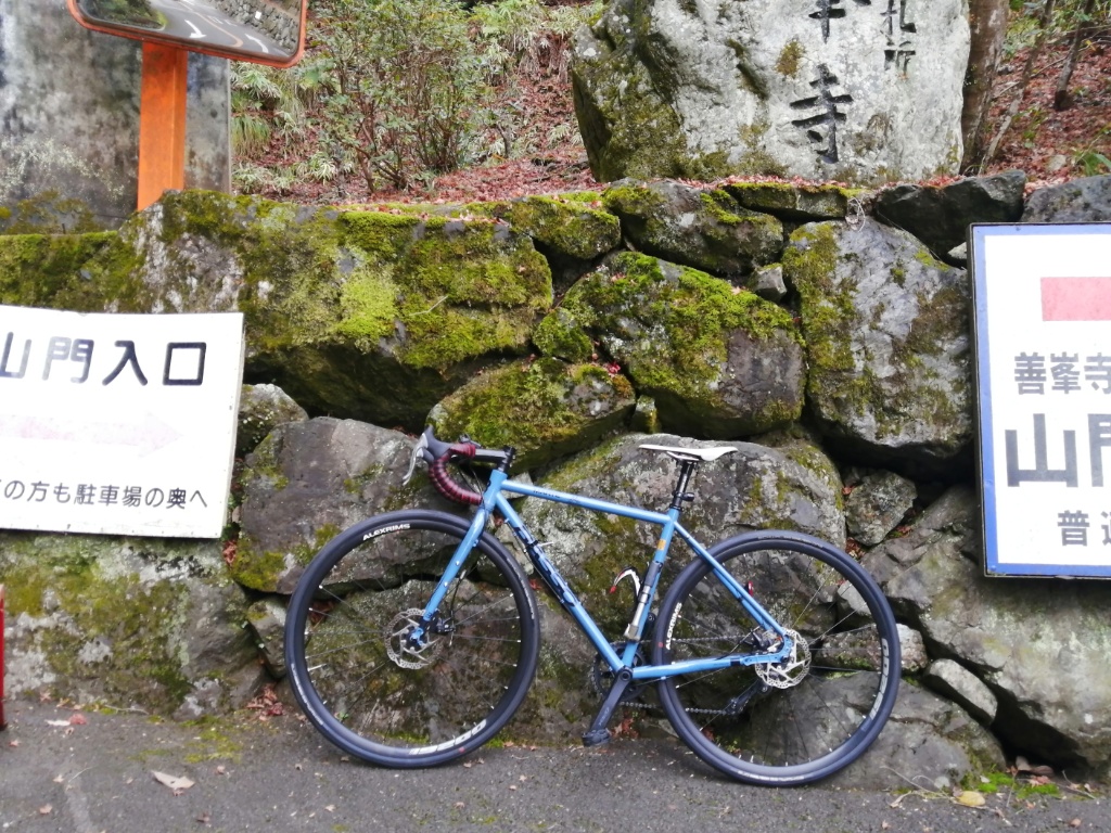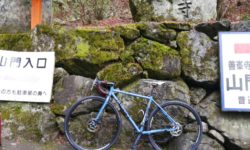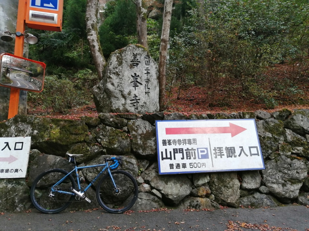 善峯寺の最後の激坂は、今回も1つ目の横断グレーチングで足着きです。ただ駐車場手前まで体力をセーブして臨めば、1.57のギア比で登れそうな気もします。