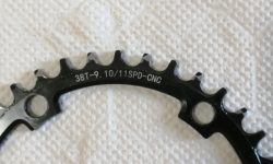 取り外した38Tのチェーンリングですが、インナープレートと接する歯(薄い方の歯)だけが摩耗していました。