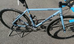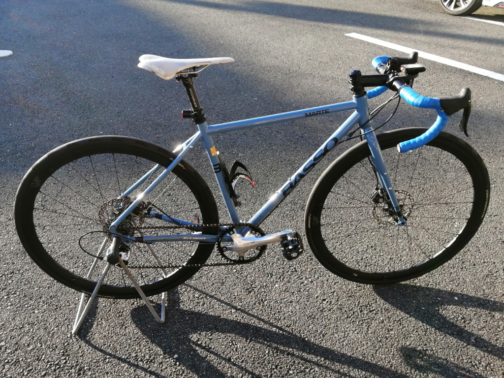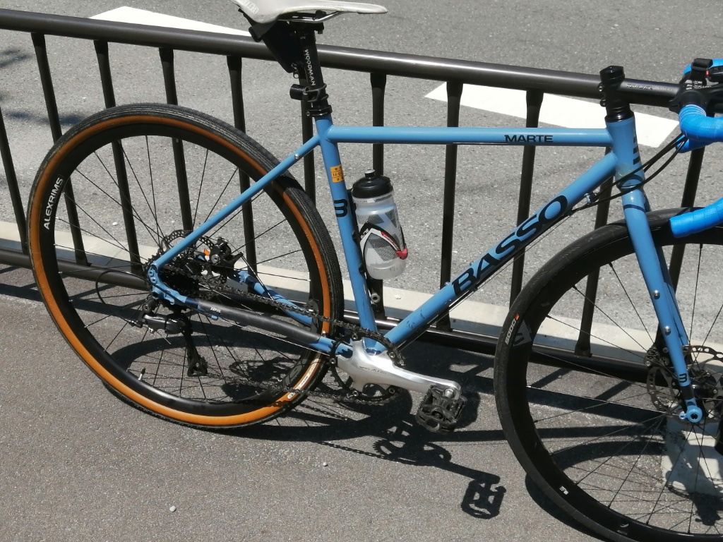 ディスクブレーキ・ロードを探す時、もちろんロードバイクのジャンルで探してもいいのですが、リーズナブルな値段で納得できるのがなかなかありません。むしろグラベルロードとかオールロードといったジャンルにいいものがあります。Basso Marteもグラベルロードです。ある程度軽量化し、タイヤを28Cにすれば、舗装路も十分走れます。というか、道路条件によっては普通のロードバイク以上の走りをします。