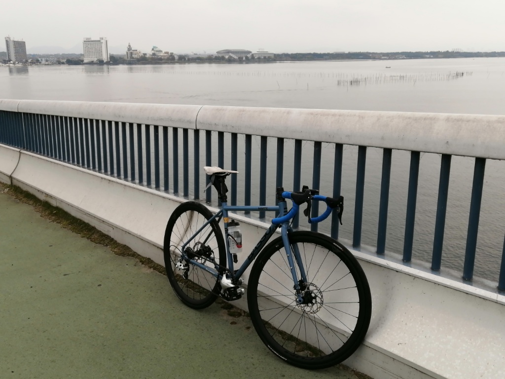 平地は向かい風がそんなに苦になりません。ホイールのエアロ効果で、スピードが落ちにくいからでしょう。ただ距離を走ると車体の重さが疲労を蓄積させていく感じです。山中越も普通に登れますが、登り終えた後で疲れが来ます。