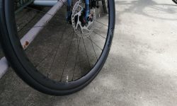 Marteのリアホイールは、実験的にAlexrimsのホイールで38Cのタイヤにしています。フロントホイールは、Racing400 DBにGrandPrix5000の28Cです。リアの荷重が増えること以外は特に問題ありません。ハンドリングも鈍重な感じにはなりません。荒れた路面での安定性重視なら、フロントを太いタイヤにする方が有効です。でもその場合、ハンドリングのシャープさが失われることを覚悟する必要があります。せっかくなのでこの38Cタイヤ(グラベルキングSS)を使い切りたいのですが、グラベルメインで走ることはないですし、舗装路メインで走っている限り、そんなに摩耗するものでもありません。なので38Cはグラベルを走りたくなったときのためにとっておき、普段は軽くて軽快な28Cにすることにします。リアホイールごとRacing400 DBに戻す予定です。