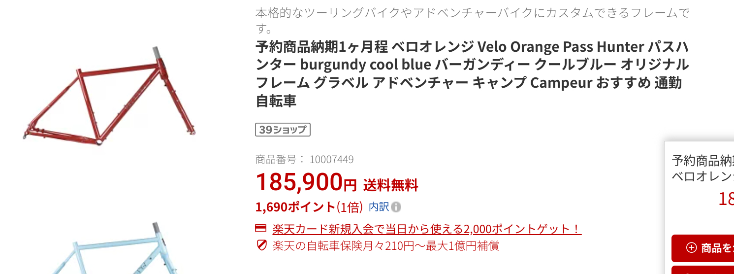 いずれどこかでインプレが出るでしょう。どんなバイクに仕上がっているか興味があります。あと意外だったのは、フレーム販売があること。税込87,780円です。完成車が131,780円(税込)なので、フレーム販売はちょっと割高な気がします。