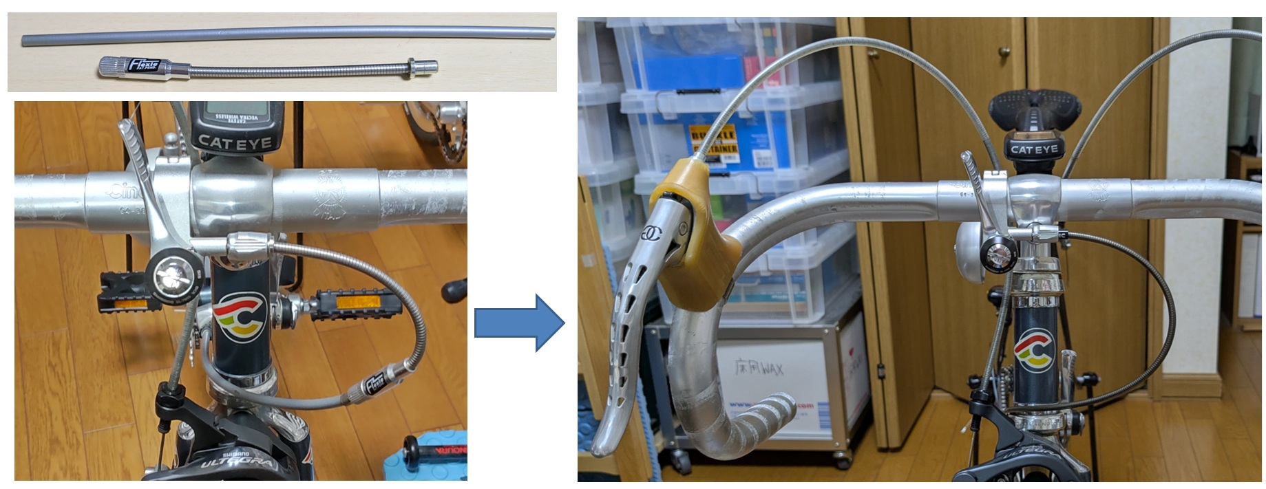 ちなみにMarteは、最近シフターをハンドルマウントにしました。ハンドルもフレア型にしています。ハンドルのブラケット部が軽量になったのと、ハンドルのリーチが短くなったため、ハンドリングが軽快になりました。