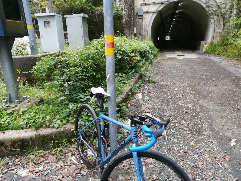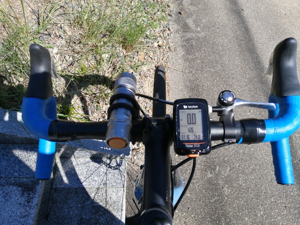 今日の試走は、BR-RS305のパッドの焼入れを兼ねています。最初は、リアブレーキ(これはデフォルトのBR-TX805のままです)の補助なしでは止まれませんでした。帰りがけにはそこそこ効くようになりました。もう1回山を登れば焼入れ完了でしょう。