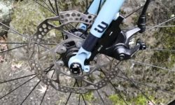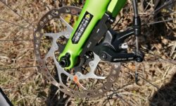 ブレーキローターは、前後共シマノを使っています。こちらもひずみ(板の波うち)とかはなく、問題なく使えています。ホイールの振れに影響されないのがディスクブレーキのメリットですが、ブレーキローターにひずみが出るとブレーキのセッティングに影響します。パッドとローターのクリアランスは、できるだけ狭くしたいので、ローターの精度は大事です。