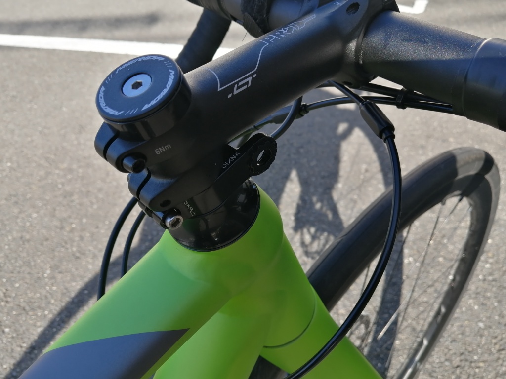 Marteは、73度のステムを使っているので、ステムがほぼ水平になります。水平のステムを使うのは、見た目の良さもありますが、Marteの場合はハンドルを下げるという目的もあります。