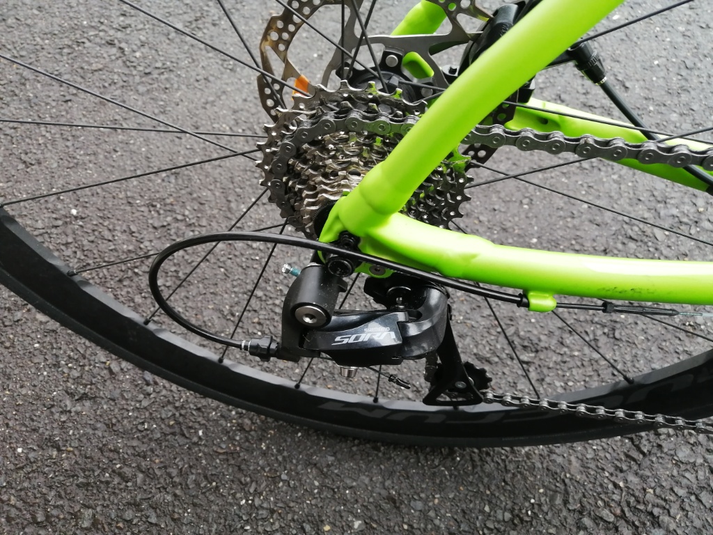 ディレーラーは、前後ともSORAです。FD-R3000とRD-R3000-GS。スプロケットは、MicroSHIFTの9速、11-28T。