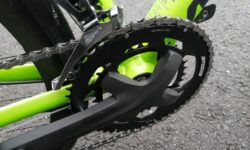 クランクはシマノのAlfineです。シングル用のクランクということになっていますが、実際にはPCD130のダブルクランクです。しかもホローテックなので軽量です。取り外した38Tをインナーに付けるというアイデアが浮かびましたが、シンプルでなくなるので却下。仮に44/38Tのシングル+として使ったとしても、ギア比1.36は中途半端なのです。だったら20%以上の坂はNCR700に任せる方が役割分担としてすっきりします。