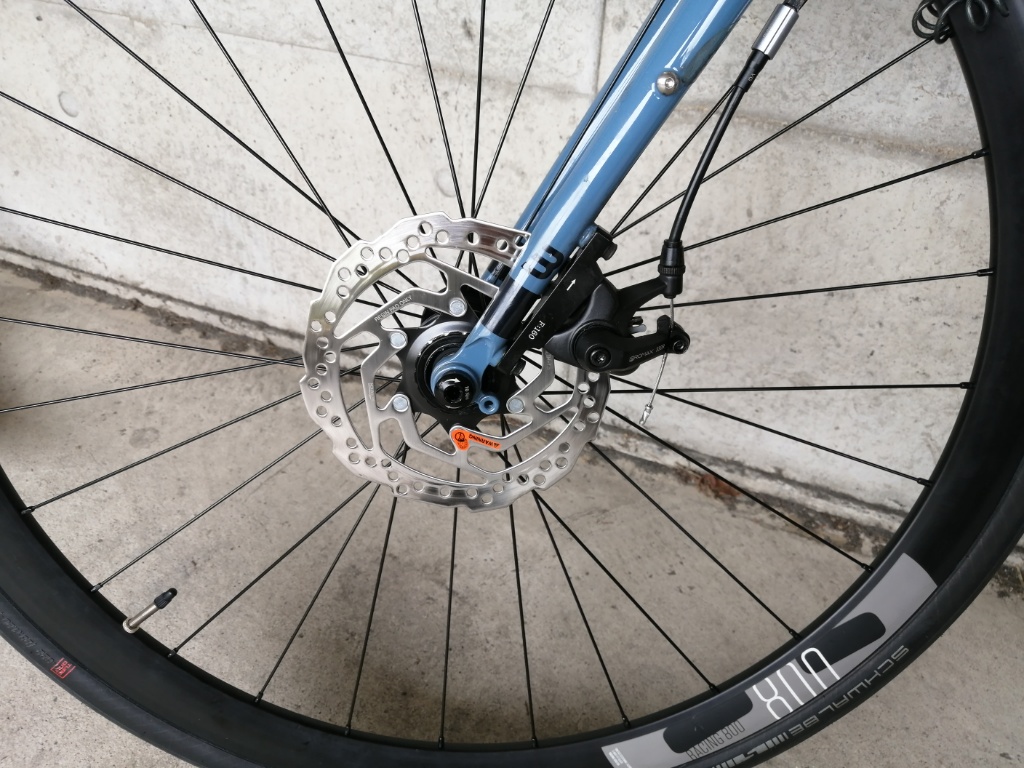 ARTMA Rylasの重量は11.0kgだそうです。想像していたよりちょっとだけ重い。ホイールは、ハブにNovatecを使った、工場生産の手組といった感じです。32H。ハブは軽いはずなので、リムがそこそこ重いのでしょう。