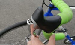 フリクション式の変速機のメリットのひとつは、リア・ディレーラーやスプロケットの段数に依らずに使えることです。Marteは、Clarisのディレーラーにシマノ8速のスプロケットの組み合わせですが、Wレバーのストロークにはまだ余裕あるので、おそらくどんな組み合わせでも変速可能だと思います。通常はディレーラーを頻繁に交換することはないので、スプロケットだけを交換することになりますが、8速でも9速でも12速でも使えますし、シマノのスプロケットからカンパニョーロのスプロケットに換えても、問題ありません。シマノとカンパでは、フリーギアの規格が違うので、スプロケットに互換性がありません。なのでインデックス式の変速システムでシマノフリーのホイールをカンパフリーのホイールに交換する場合には、スプロケットはもちろん、シフターとディレーラーも交換が必要になります。フリクション式の変速システムでは、そうした問題が発生しません。