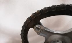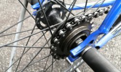 フリーギアというのは、後輪のハブに付いているギアです。ペダルを回した時には駆動力がホイールに伝わり、ペダルを止めた時には、ホイールだけ空走する仕組みです。フリーギアの反対は固定ギアで、固定ギアでは走っているときにペダルを止めることができません。フリーギアの発明によって、自転車は誰もが乗りやすい乗り物になったと言えるでしょう。シマノが創業して最初に作ったパーツがフリーギアです。輸入に頼るしかなかったフリーギアを国産化したわけです。一大パーツメーカーとしてのシマノは、フリーギアから始まったのです。そうした由来があるので、シマノはずっとフリーギアを作り続けるはずです。現在のラインアップで、フリーギアは厚歯と薄歯の2種類があります。SF-1200は厚歯です。値段は4,000円台。以前より値上がりしていますが、シンプルな見かけの割にはけっこう高いです。歯数は、16T、18T、20Tの3種類。ぼくは20Tを今使っています。チェーンは当然厚歯用が必要です。フロントのチェーンリングは、薄歯も使えますが、厚歯で揃えたほうがベターです。