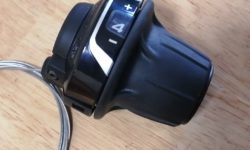 フラットバーハンドル用のシフターで、シマノはレボシフトと呼んでいますが、一般的にはグリップシフトと呼ばれます。8Rは、8速の右シフター(リア変速)の意味です。7速用の7R、6速用の6Rもあります。左シフター(フロント変速)もあります。Lが付くのがフロント3速インデックス式、LNが付くのがフリクション式です。6から8速の変速機を網羅しています。シマノの6-8速の規格は、ロードとMTBで共通なので、幅広く使えるということです。フラットバーハンドルで乗るなら、レボシフトがおすすめです。右シフターの場合は、右まわし(向こうに回す)でシフトアップ、左まわし(手前に回す)でシフトダウンです。これがバイクの進行方向と合っているので、操作は直感的にできます。ちゃんと調整すれば、変速性能は、STIやラピッドファイヤーと変わりません。むしろ一気に何段か飛ばして変速する場合は、レボシフトの方が使いやすいです。ふいに手に力が入った時に、間違って変速してしまうのでは、という意見もあります。ぼくはブレーキレバーよりも内側(ハンドルコラムに近い方)に取り付けていました。変速操作のときに、少しですがハンドルから手を移動させる必要があり、手元変速とは呼べなくなりますが、そんなに気になりません。サムシフターよりも使いやすいと思います。