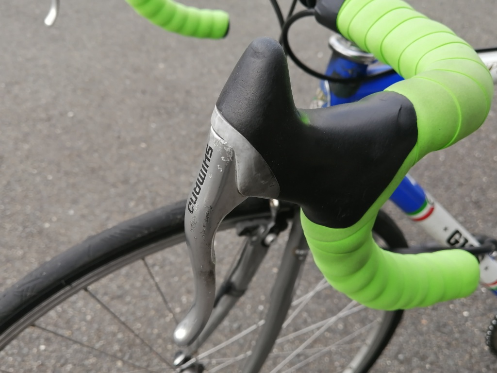 シマノのドロップハンドル用ブレーキレバーです。値段は、左右セットで4,000円台。重量は、左右合わせて275g(実測値、インナーワイヤー含む)。ワイヤーの引き量は、もちろんロード用です。ぼくは2セット持っています。1セットはシングルスピードのVintage Pista用、もう1セットはMarte用です。シフターが要らないシングルスピードや、Wレバーのバイクでは、ブレーキレバーは純粋にブレーキレバーの役割を果たせば良いので、デザインもそれに特化できます。ブラケットは細身で握りやすく、重量も軽くなります。ClarisのSTIのほぼ半分の重さしかありません。これがハンドリングに大きなプラスになります。ロードバイクらしい走りを求めるなら、ハンドル周りの軽量化は大事です。ブレーキレバーを握ったときに開く上の穴の奥にボルトがあるので、ハンドルへのクランプはそのボルトで行います。ワイヤーの交換もその穴から行います。STIやエルゴのようにブラケットカバーを捲る必要はありません。ブレーキレバーを握っていないときは、内部の機構はすべて隠れています。スッキリとしたデザインです。機構はシンプルで、頑丈です。雨の中を走ったこともありますが、今まで壊れたことはありません。ガタもないし、引きの軽さも新品のときと変わってないと思います。