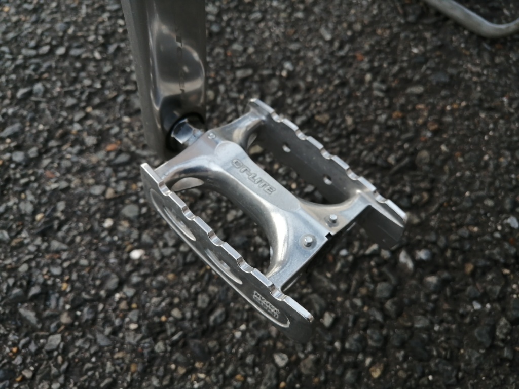 このスレは、これからも作り続けてほしいパーツという趣旨なので、CT-LITEを挙げます。アルミ製で、重量は343g。値段は3,000円程度。こちらも丈夫です。靴底が接触する部分は、靴底にダメージを与えない形状です。でも靴が滑るということもなく、十分なグリップがあります。MKSのペダルは、どれもベアリングは滑らかで、それがずっと持続します。デザインもすっきりしていていいです。