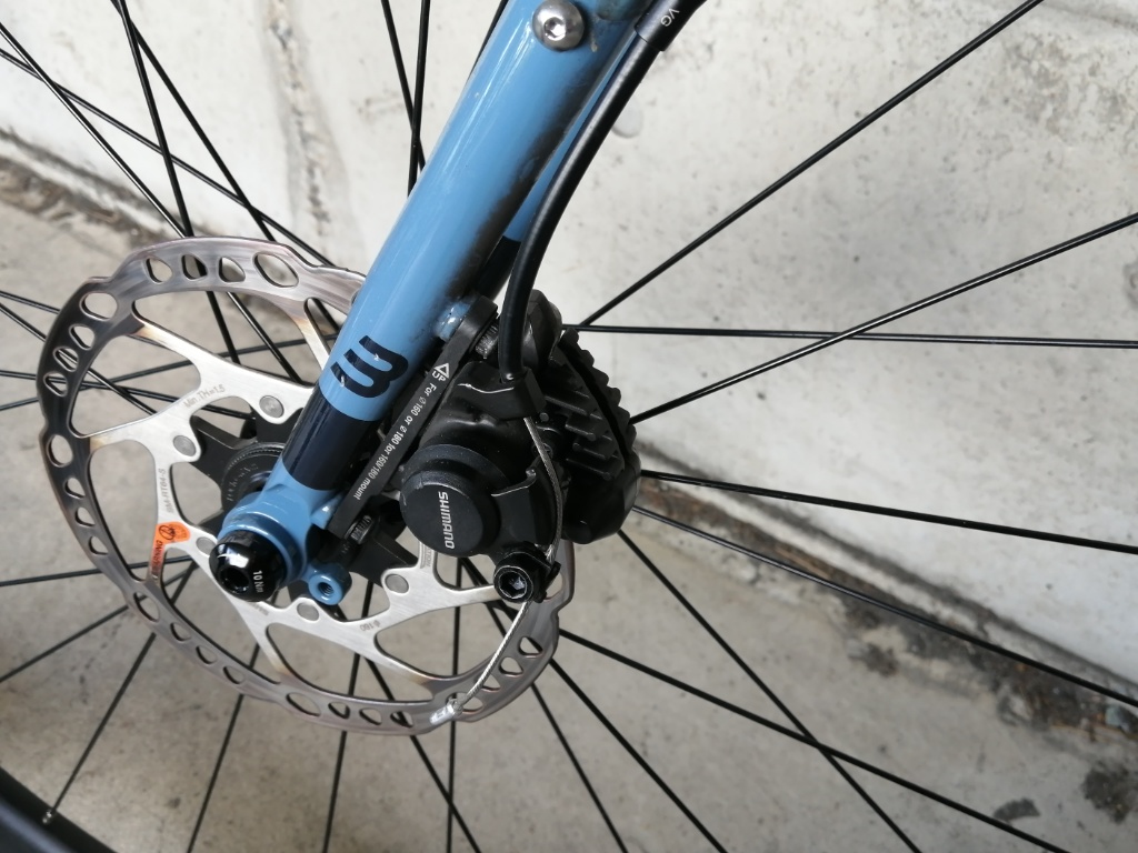 実売価格は前後ペアで14,000円程度です。シマノのロードバイク用機械式ディスクブレーキは2種類あります。BR-RS305がフラットマウント、BR-R317がポストマウントです。アダプターを使えばBR-R317をフラットマウントのフレームに取り付けることは可能です。でも見た目があまり良くないので、フラットマウントのフレームを持っているなら、BR-RS305一択でしょう。MTB用のディスクブレーキでもロードバイクで使えないことはないです。たとえばMarteにはTourneyのBR-TX805というVブレーキレバーの引き量に対応したディスクブレーキが付いていました。調整がややシビアですが、使えていました。でも無理して使うほどではありません。素直にロードバイクの引き量に対応したものに交換した方がいいです。Tiagra以上のグレードは油圧式ディスクブレーキなので、機械式はSoraとClarisグレードです。ブレーキ本体の値段は、BR-4770の方が安くなっています。ただしSTIレバーを含めた値段では、Tiagraの方が高くなります。ディスクブレーキは、レバー部分にコストがかかっているということでしょう。BR-RS305に付いてくるパッドは、L05Aというフィン付きのレジンパッドです。冷却用フィンの有無、メタルかレジンかで、計4種類のパッドから選べます。Kで始まる品番は、フィン無しです。制動力は、レジンパッドでも十分です。リムブレーキと比べればディスクブレーキの方が放熱性は高いので、通常の使用ではフィンなしでも問題はないと思います。ちなみにパッドは、Dura-Ace等の上位グレードのディスクブレーキと共用です。ディスクブレーキに関しては、低グレードだからといって手を抜いていません。
